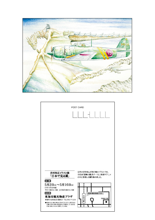翼をテーマにしたイラストで個展を開かれている、井村和正さんのイラスト展 “日本で見る翼”のポストカード作成のご依頼をいただきました。